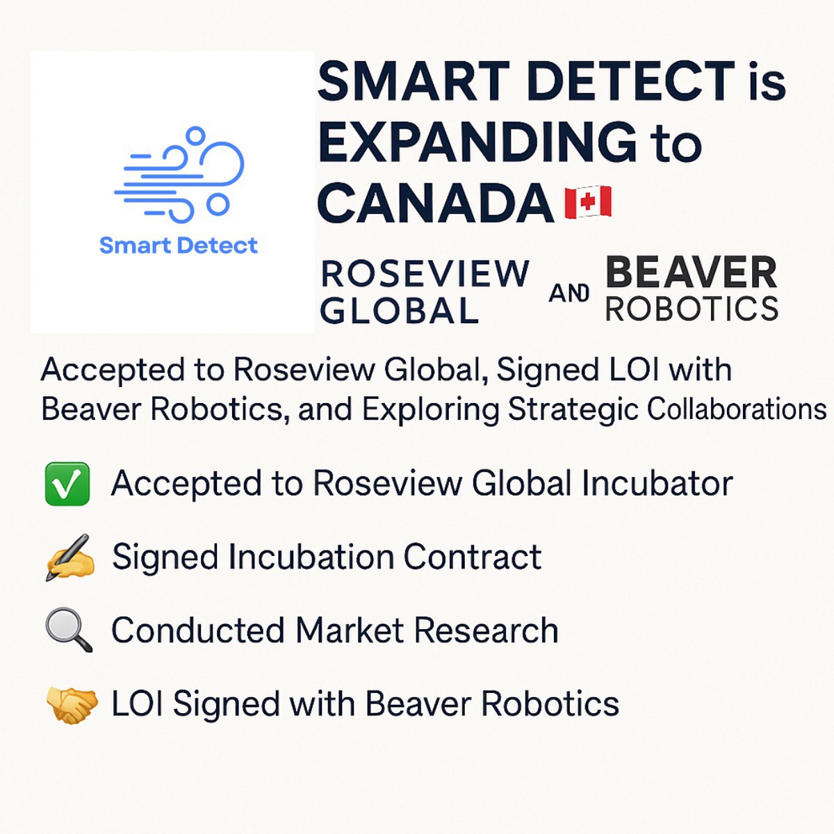 #SmartDetect #RoseviewGlobal #BeaverRobotics #StartupMilestone #HealthTech #AirQualityInnovation #CanadianStartup #WorkplaceWellness